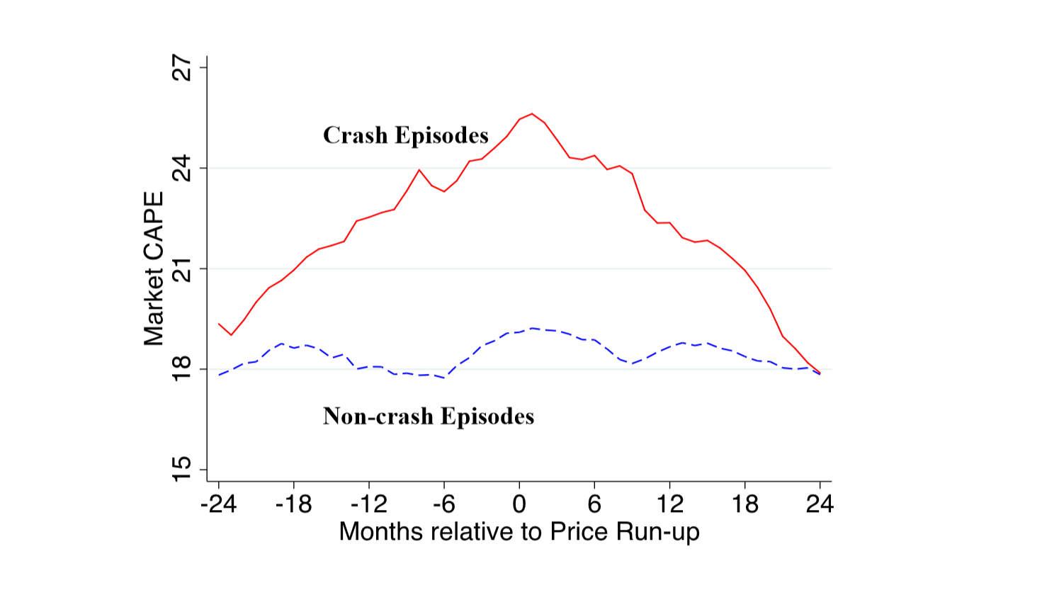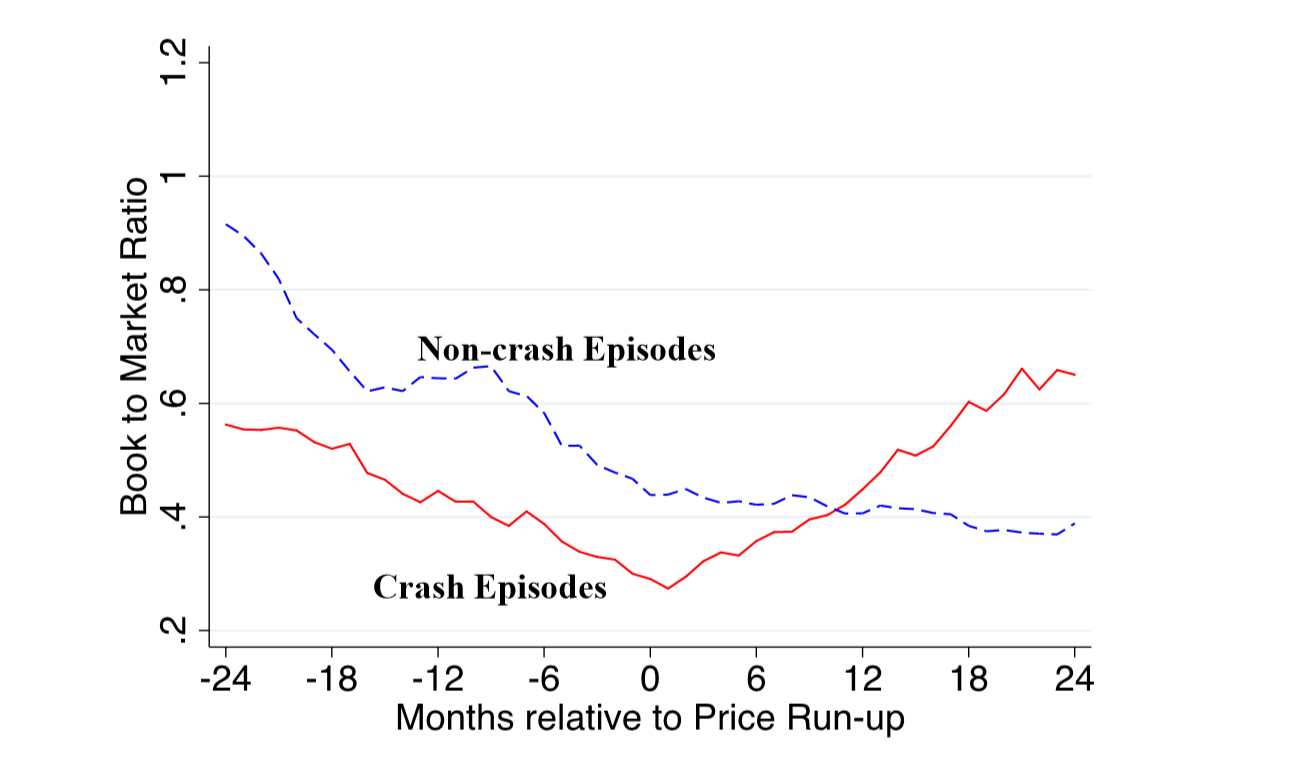 三位學者重申,呢個升幅愈高急跌機率愈高嘅現象並唔必然反映市場無效率。但研究進一步顯示之後會急跌嘅急升,其實係有特徵可尋。呢一堆特徵分別係市場波幅會係跌市前抽高、上市公司平均年齡會下降、市帳率較高同高市盈率等。
