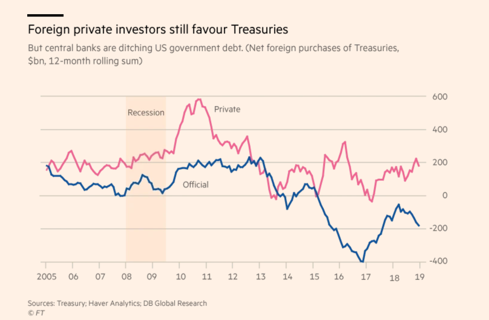 點解呢?下圖係美國國債外國淨增持嘅數量。