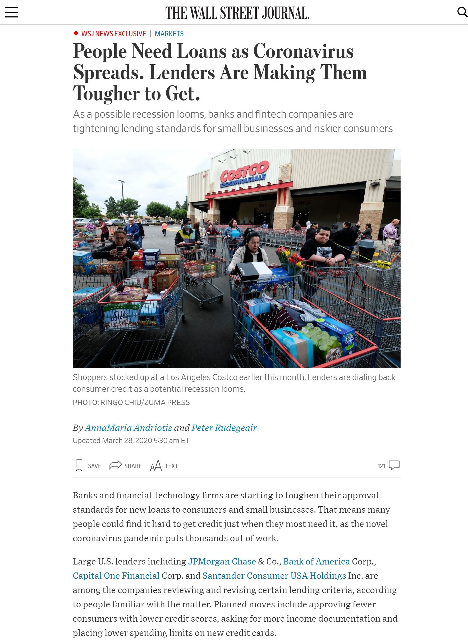 全文: People Need Loans as Coronavirus Spreads. Lenders Are Making Them Tougher to Get.