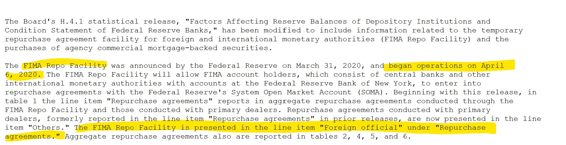 上次都講過:「FIMA Repo Facility嘅一個重點,就係佢本身同聯儲局嘅央行貨幣互換協議(Central Bank Swap Lines)唔同,唔係一個主要幫其他國家央行嘅工具。FIMA Repo係借美金俾持有大量美國國債嘅人,亦即係較唔怕無美金嘅國家。呢個工具嘅重點係提供誘引令呢啲美國國債持有人唔好一齊沽出國債,以降低美國國債孳息出現短期波動嘅情況,較似係利聯儲局自己嘅政策。」