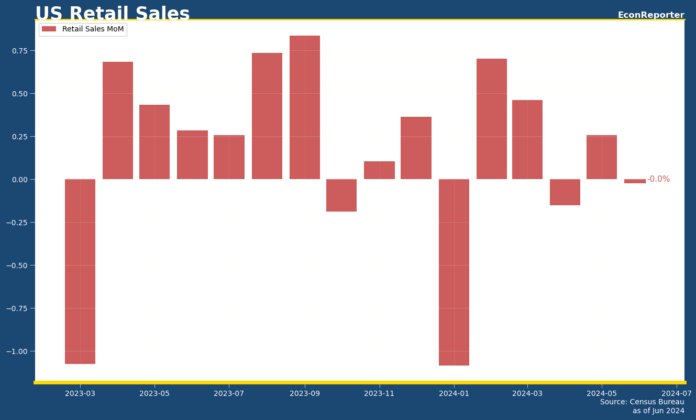 美國嘅零售銷售數據喺6月係無微微跌左0.02%,亦即係接近無升跌。睇Bloomberg話個預期係跌0.3%,所以係好過預期。