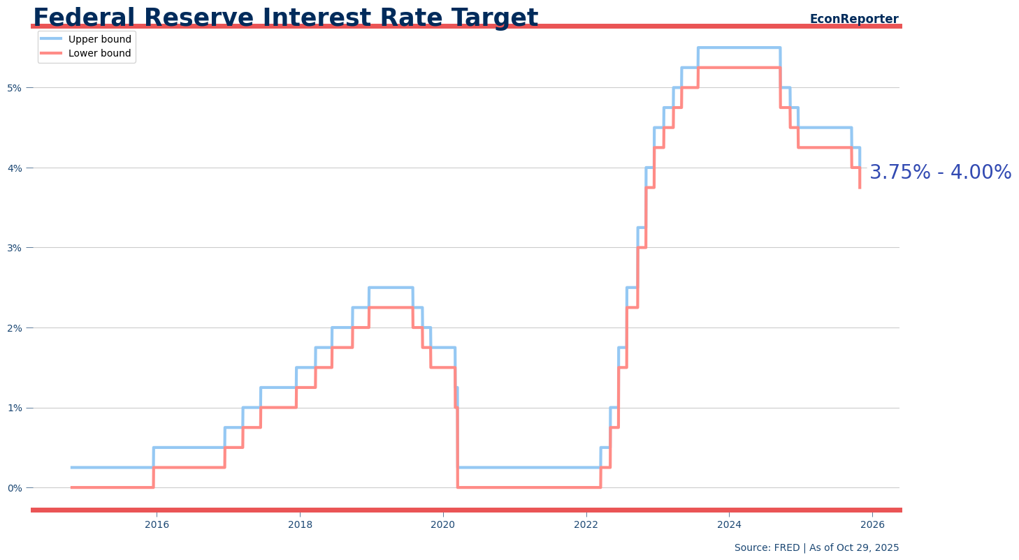 聯儲局決定再減四分一厘息,利率目標區間降至3.75厘至4厘。