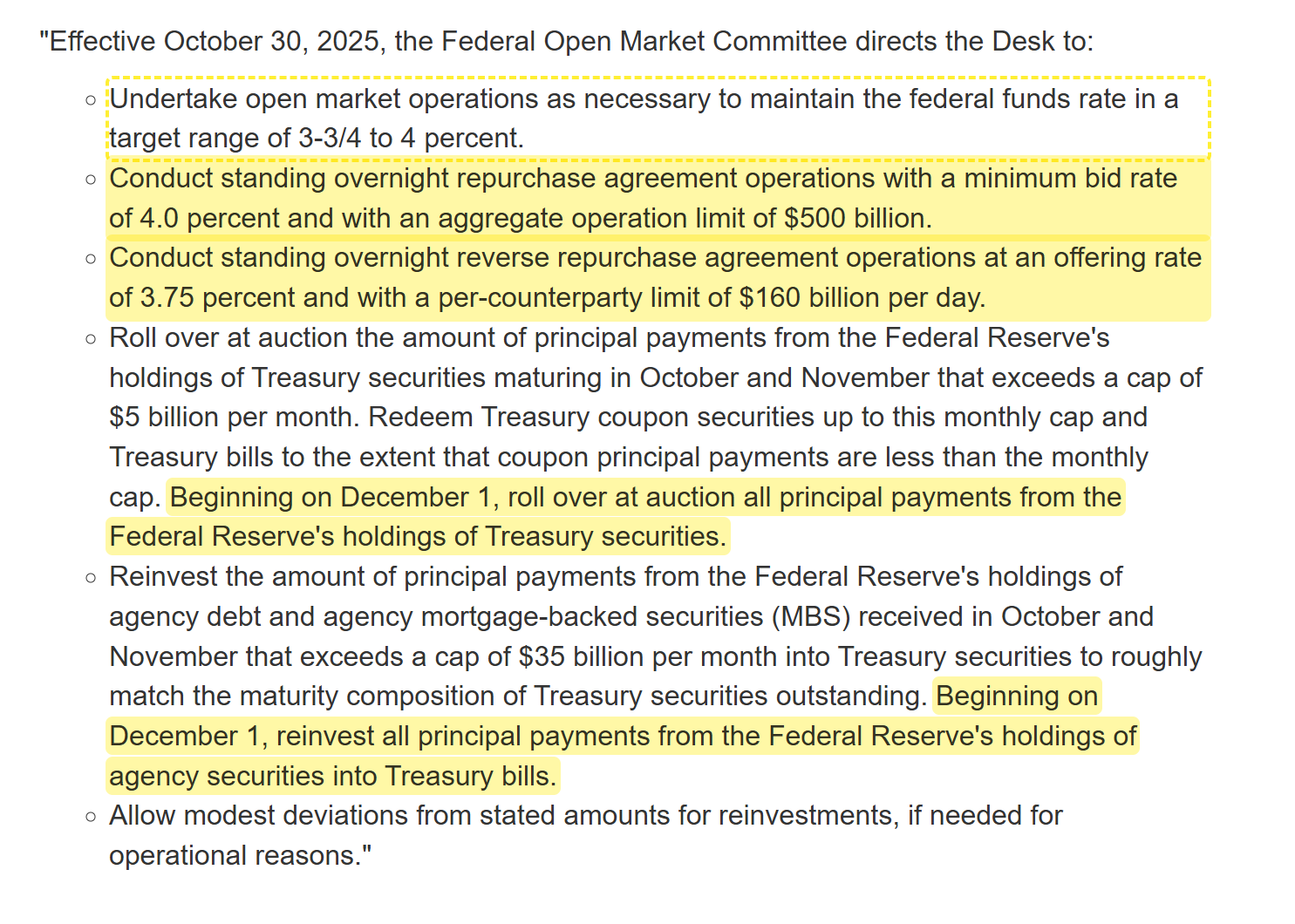- 現行嘅50億美元美國國債QT上限,到時會變成零,即係全數續回國債得返黎嘅金額,會用黎買入其他美國國債;