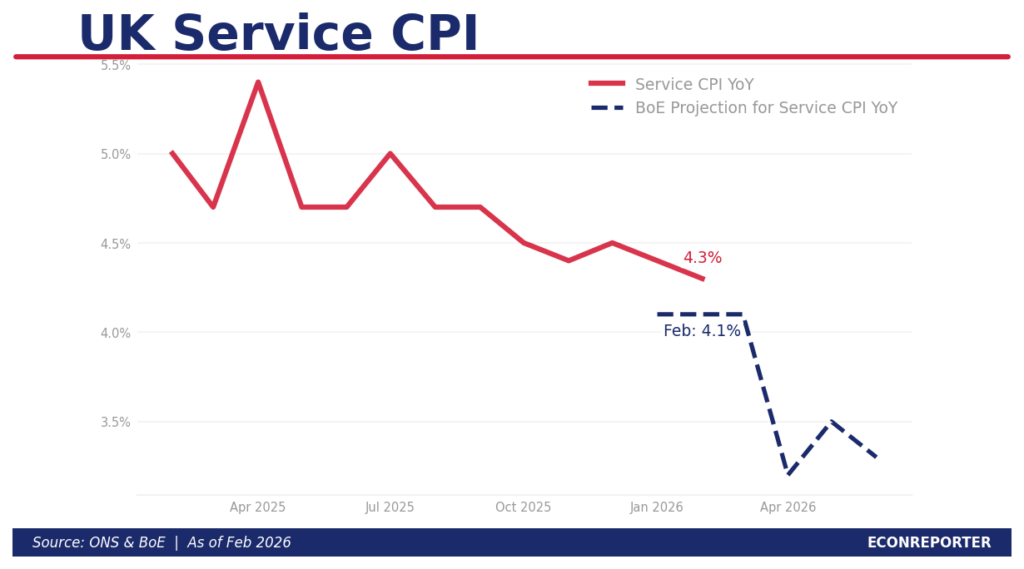 呢個就係點解英倫銀行喺二月時出嘅貨幣政策報告,估緊嘅係包含左水電煤及住屋嘅服務CPI,將會由依家嘅4.3%按年升幅,到四月大跌至只有3.2%。