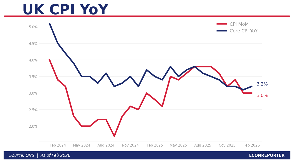 星期三公佈嘅二月英國CPI數字,係最後一份唔受伊朗戰爭影響嘅通脹報告。