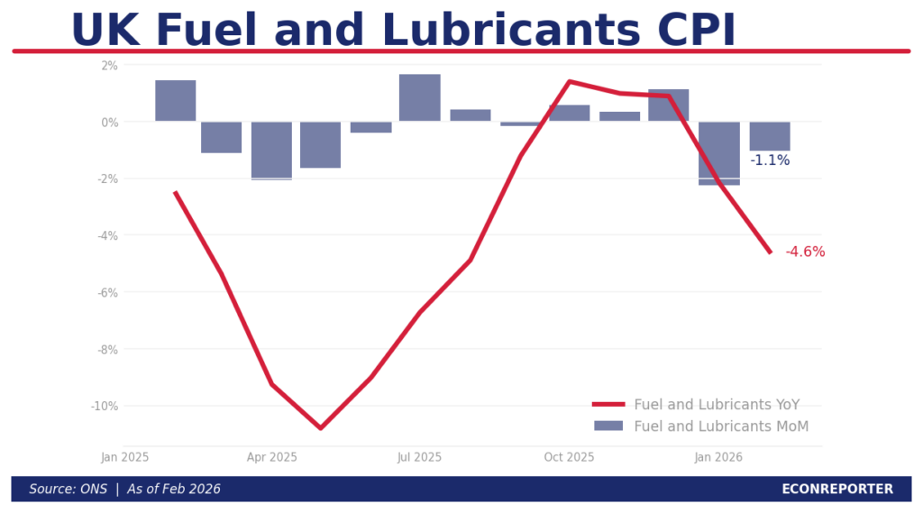 ONS(英國統計局)嘅CPI報告入面另一個可以見到油價影響嘅地方,就係運輸用嘅燃油價格