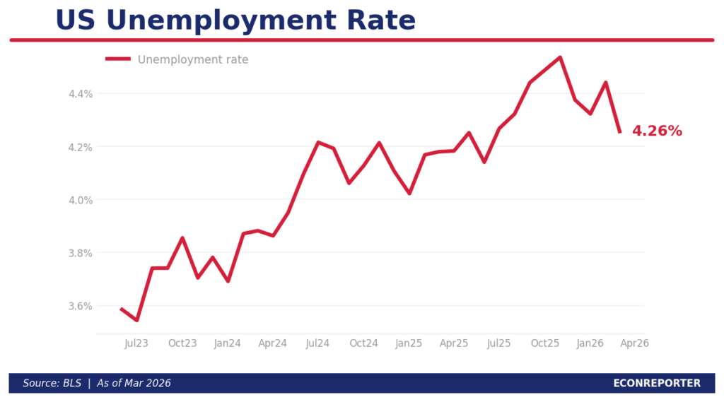 - 3月嘅失業降至4.26%,同上個月嘅4.44%減左0.18個百分點,都頗為顯著。